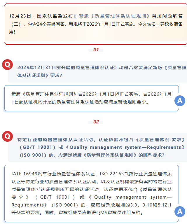 建议收藏 | 24个新版《质量管理体系认证规则》问答来了!